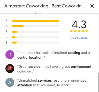 Jumpstart The Best Co-working With The Best Management Officials who guide you the best rather than trapping you in some magic discount scheme Highly Recommended